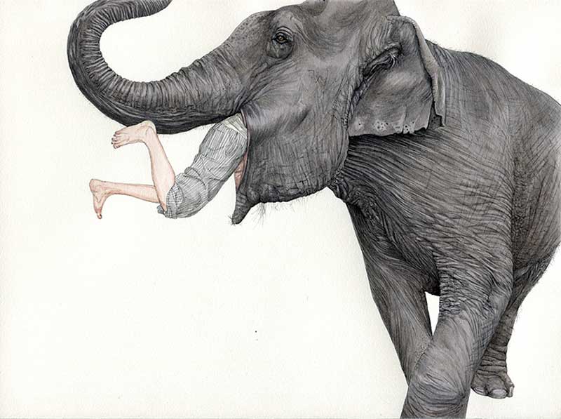 The surprising maturity of drawing juxtaposes art and humor, irony and cruelty. Indeed, his often absurd, grotesque, sometimes irreverent subjects are drawn from the marvelous world of tales and legends, sometimes from memory and its effects of alteration.