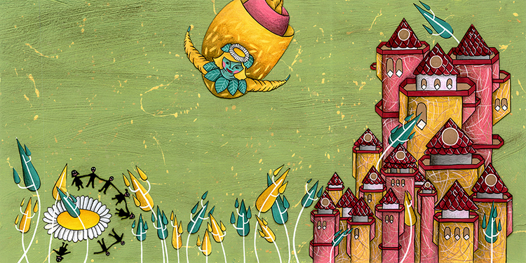 در روند کارم ابتدا شخصیت های اصلی کتاب را طراحی کردم که باتوجه به اینکه شخصیت اصلی کتاب بذر گل بابونه بود در طراحی کاراکتر آن را به صورت شخصیت انسانی درآوردم. در کل در طول طراحی برای کتاب به بیشترین چیزی که توجه دارم این است که تصاویری که خلق می کنم صرفا شخصیت محور نباشند و علاوه بر شخصیت داستان دوست دارم توجه خواننده و بیننده را به محیط اطراف و فضا سازی نیز جلب کنم.