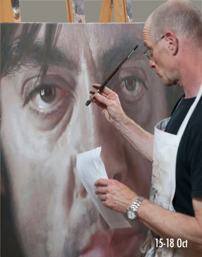 وسایل اصلی او شامل رنگ آکریلیک می شود ، و نقاشی های او با جزئیات کاملاً ریز واقع گرایانه ارائه می گردد.