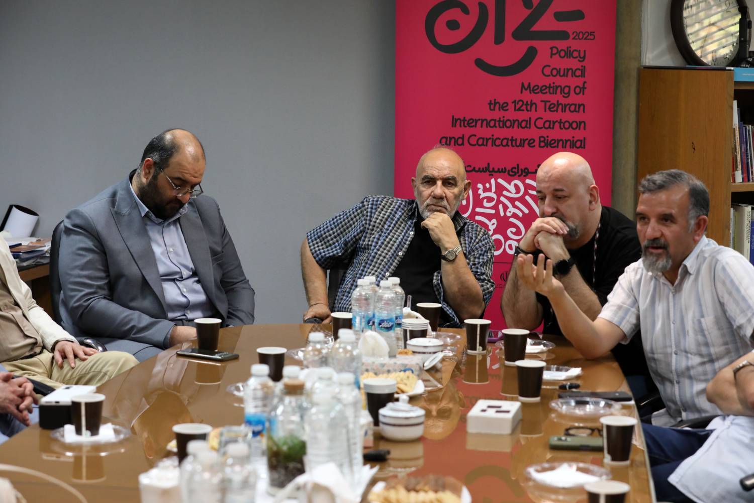 نشست شورای سیاست گذاری دوازدهمین دوسالانه بینالمللی کارتون و کاریکاتور تهران، جمعه ۹ آبان ۱۴۰۴ با حضور آیدین مهدیزاده مدیر کل دفتر هنرهای تجسمی وزارت فرهنگ و ارشاد اسلامی، محمد خراسانیزاده سرپرست معاونت هنری سازمان فرهنگی هنری شهرداری تهران، جعفر واحدی رییس موسسه توسعه هنرهای تجسمی و جمعی از هنرمندان، در محل موزه هنرهای معاصر تهران برگزار شد.