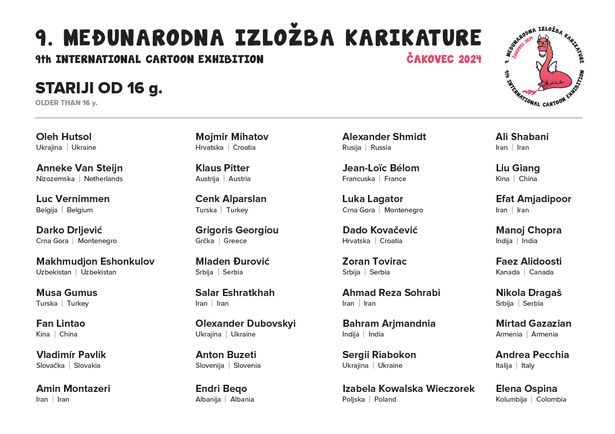 در مسابقۀ 9th International Cartoon Exhibition تعداد 284 کارتونیست از 60 کشور جهان و با ارسال 563 اثر شرکت کردهاند.