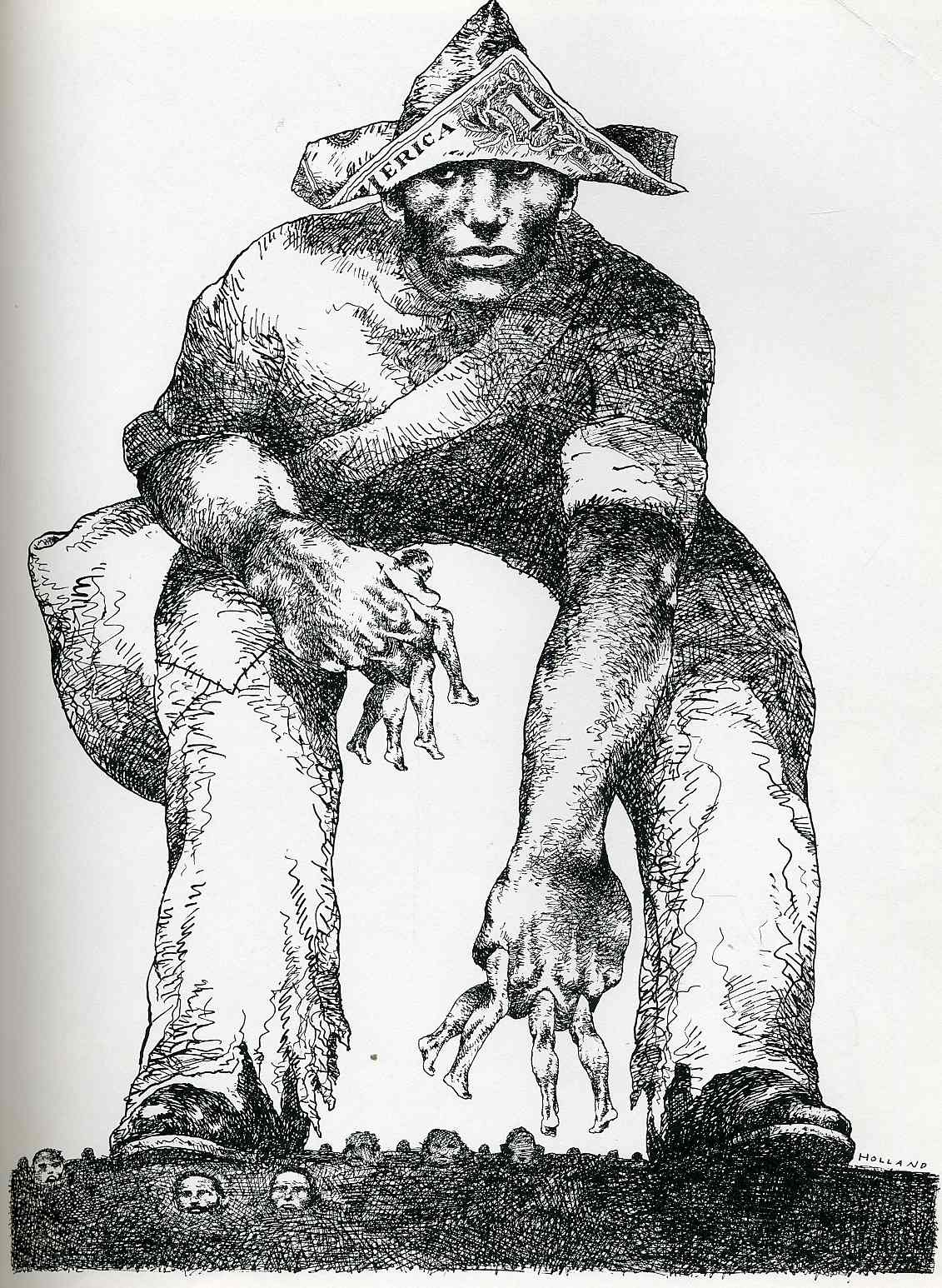 Early in his career, the Washington Post Profiled Brad Holland on the front page of their Style Section, calling him “the undisputed star of American illustration.” In 1999 the editors of the artists' directory RSVP voted him “the one artist, who in our opinion, has had the single greatest impact on the illustration field during the last twenty-five years.” In a 2009 profile in Graphis Design, artist Christoph Niemann commented: “After inventing a whole new approach to illustration in the 70s, he has been reinventing himself constantly and is one of the very, very few people in the history of illustration to have stayed fresh, inspiring and eminent for an entire career.” And author Steven Heller has written in Print Magazine: “As Pollock redefined plastic art, Holland has radically changed the perception of illustration.”