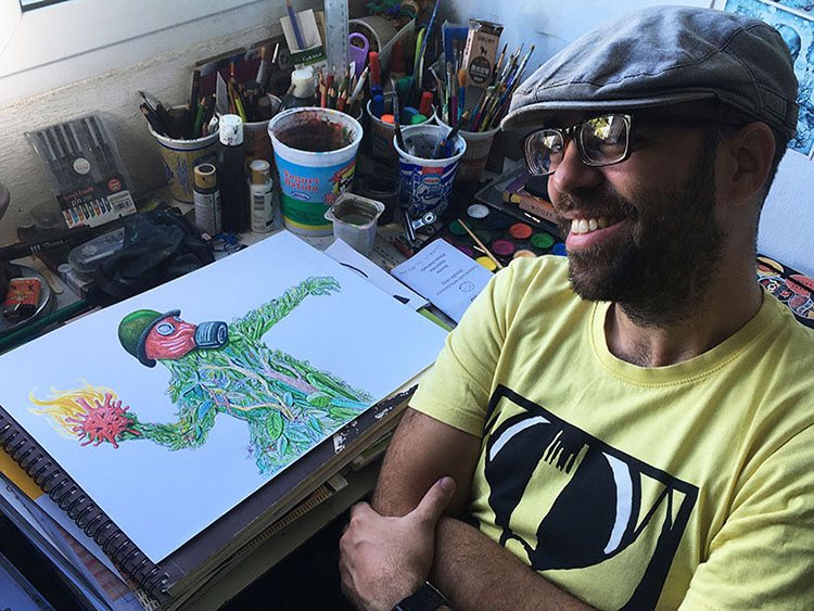 He's graphic work includes cartoons, illustration, paintings and engravings. As cartoonist, he keeps frequently collaboration with different national and international newspapers. He has done 12 personal exhibitions and participated in more than 70 worldwide collective exhibitions. He's cartoon have been published in different catalogues of important international competitions. He is the illustrator of 9 books.