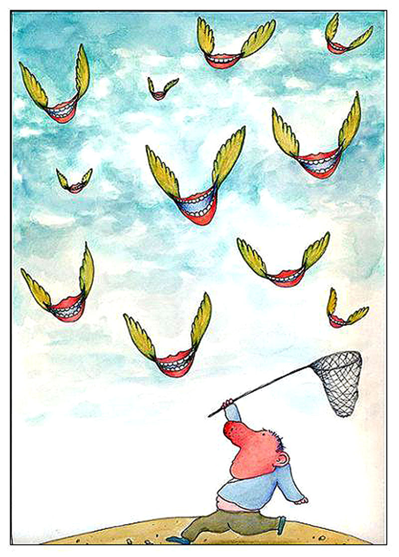 Unlike most cartoonists, he did not work with comic magazines, he tended to be elitist-oriented cartoonists, and in the sense of seriousness, he went beyond serious jokes.