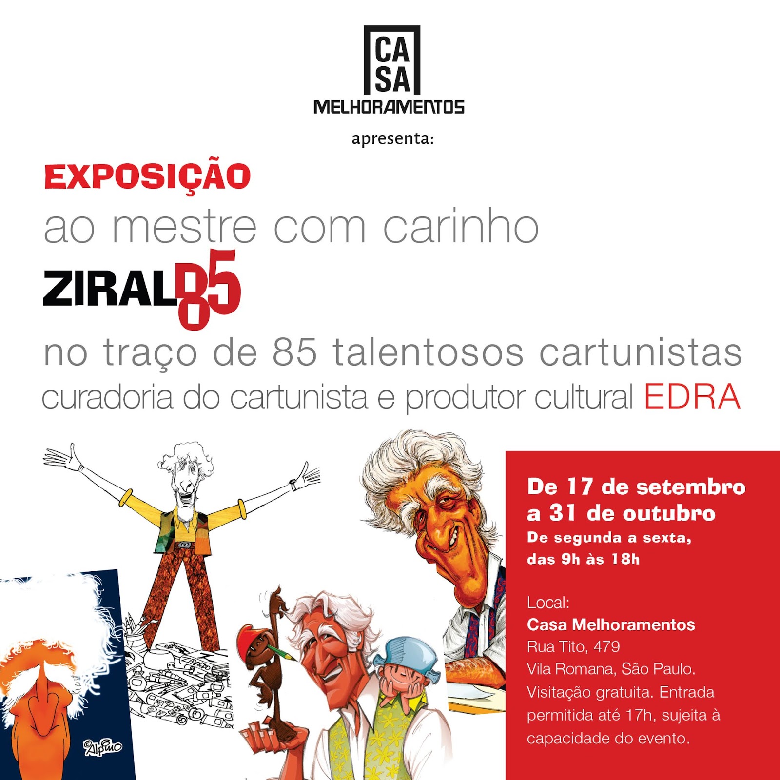 The opening cocktail of the show will be on September 16, at 19h, at Casa Melhoramentos. Edra and several cartoonists will welcome the public and autograph the books. The exhibition is open until October 31, Monday to Friday from 09h to 18h, free admission. Organizing these caricatures in a book was just part of Edra's brilliant idea, which, in addition to being a cartoonist, is also the founder of the Caratinga Humor Salon and the Ziraldo Culture House, both in Caratinga (MG), their hometown. . The second part of this remarkable work was to bring a biography with data, dates, photos, drawings and particulars of the life and work of Ziraldo, who loved the work and opened his archives to complement the work. The result was a tribute book that was also attended by the brothers of Ziraldo, Zélio and Geraldinho,