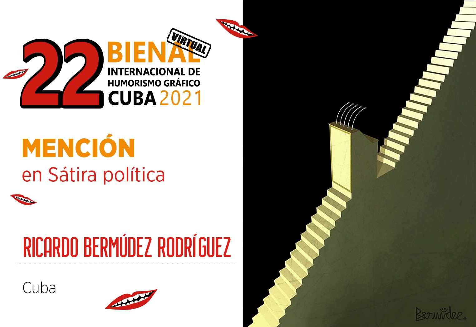 First prize: Michel Moro Gómez , Cuba. For an original cartoon with a surreal cut and impeccable workmanship.